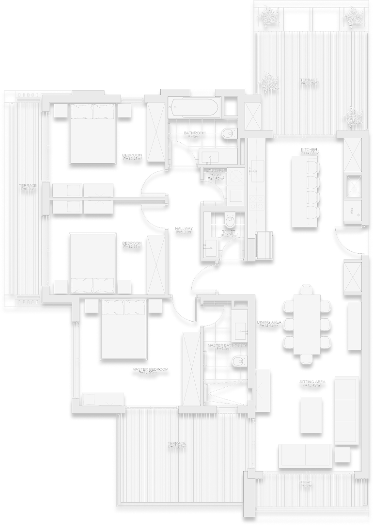 Explore our collection across each level, and discover the unique character of every residence, from dimensions and bedroom layouts to floor positioning, signature features, and world-class facilities.